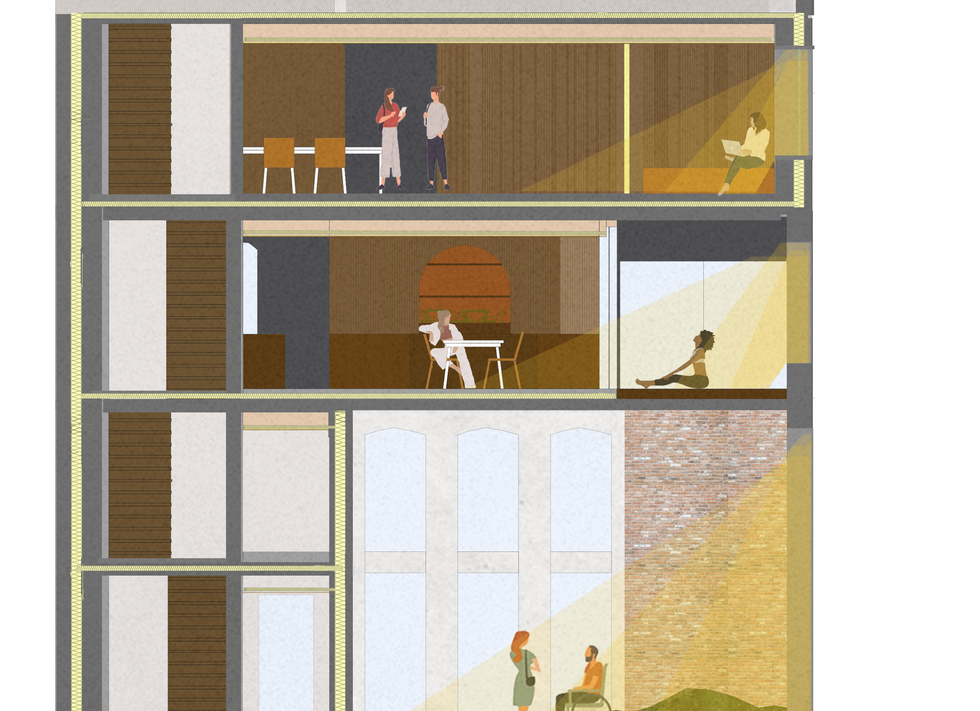 Dagverblijf voor kankerpatiënten en hun dierbaren. Een genereuze ruimte, een stuk dat terug gegeven wordt aan het publiek, en steeds privater wordt. Een plaats om contact te zoeken of af te zonderen.